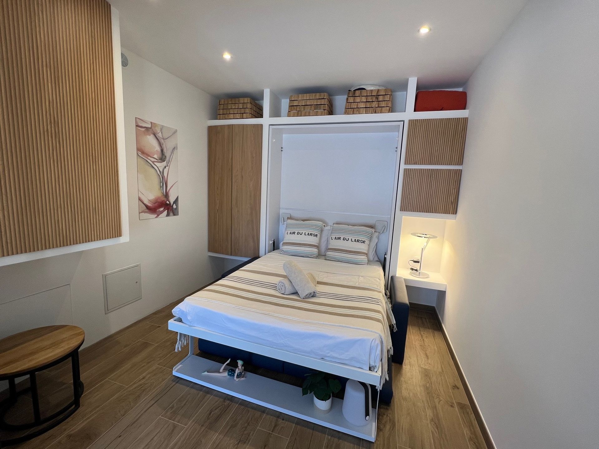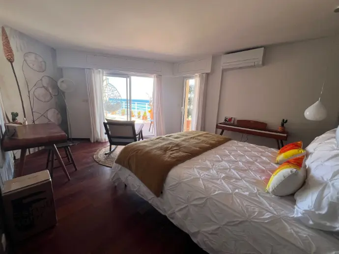 Caché en contrebas de la résidence du Cap Nérée et occupant tout l'ancien niveau inférieur du célèbre Navirotel, cet appartement atypique donne la sensation de naviguer sur un yacht.