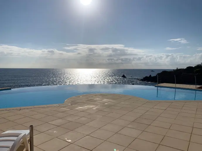 Petits et grands pourront profiter de la piscine à débordement de la résidence située en hauteur de l’appartement.