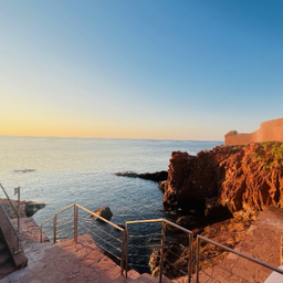 Un lieu unique ou la vue est à couper le souffle offrant le sentiment de nager au milieu de la mer avec en toile de fond les roches rouges et la baie de Cannes.